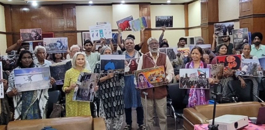 The speakers were political commentator Dr. Qamar Agha, poet Vineet Tiwari, economist Dr. Jaya Mehta, Editor and author Journalist Dr. John Dayal, and activist Joycia Thorat, a member of the IPSN, who moderated the panel discussion. Dr. Qamar Agha emphasised the historicity of the situation and the expansionist policy of US and Israel. Through imperial power, they have been expanding through the decades, with the Zionist regime building and consolidating on its Greater Israel plan on settling in the Biblical lands.